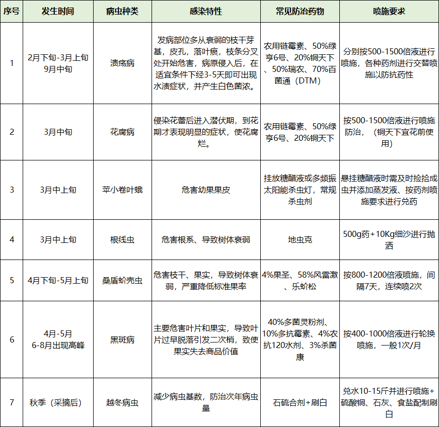 6、萌芽前全園清園:萌芽前10天,樹枝干殺蟲(卵蛹)殺菌,地面無死角消毒殺菌除蟲。