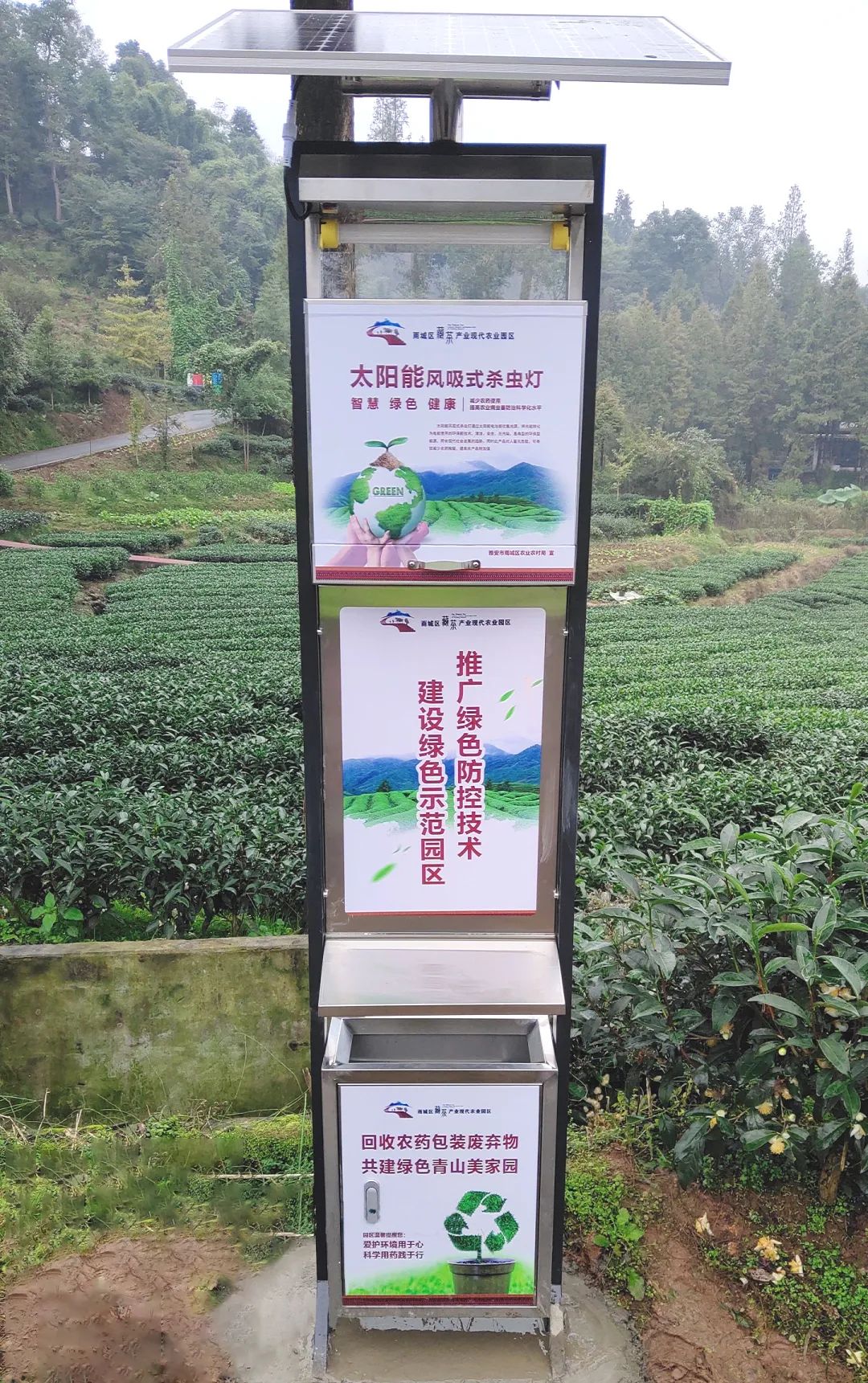 比昂科技風(fēng)吸景觀殺蟲燈,集太陽能風(fēng)吸殺蟲功能、景觀宣傳、嵌入式垃圾箱等多功能于一體,助力鄉(xiāng)村振興建設(shè)。