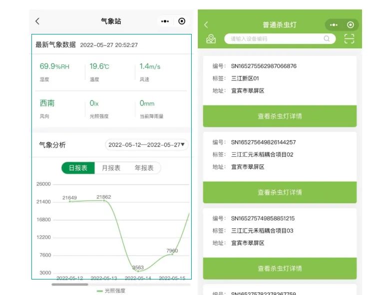 遠(yuǎn)程氣象監(jiān)測(cè)儀實(shí)時(shí)收集區(qū)域內(nèi)溫度、濕度、風(fēng)速等氣象信息;田間智能驅(qū)鳥器不間斷地發(fā)出各種音效保護(hù)著秧苗與魚苗;土壤墑情監(jiān)測(cè)儀與水質(zhì)監(jiān)測(cè)器實(shí)時(shí)監(jiān)測(cè)稻田土壤肥力情況、水質(zhì)環(huán)境;風(fēng)吸式太陽能殺蟲燈誘捕田間的害蟲;遠(yuǎn)程監(jiān)控系統(tǒng)不僅能實(shí)時(shí)采集稻田內(nèi)水稻長(zhǎng)勢(shì)情況,并且可以通過水下相機(jī)對(duì)魚情長(zhǎng)勢(shì)進(jìn)行監(jiān)測(cè)。這些智能設(shè)備都各司其職地工作著,守護(hù)著這片稻田。