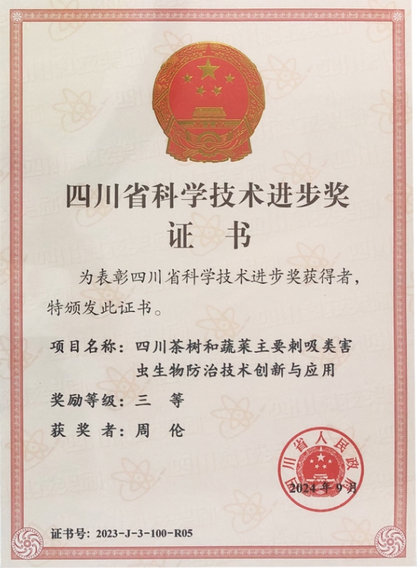 9月10日上午,四川省科技大會在成都舉行,隆重表彰了2023年度四川省科學(xué)技術(shù)獎(jiǎng)獲獎(jiǎng)代表。 247個(gè)項(xiàng)目獲得2023年度四川省科學(xué)技術(shù)獎(jiǎng),其中由比昂科技董事長周倫參與的“四川茶樹和蔬菜主要刺吸類害蟲生物防治技術(shù)創(chuàng)新與應(yīng)用”項(xiàng)目榮獲四川省科學(xué)技術(shù)進(jìn)步三等獎(jiǎng)。 食為人天,農(nóng)為正本。周倫董事長堅(jiān)信農(nóng)村是充滿希望的田野,農(nóng)業(yè)需要綠色發(fā)展。創(chuàng)業(yè)十余年,周倫董事長帶領(lǐng)比昂科技,利用物聯(lián)網(wǎng)、大數(shù)據(jù)、人工智能、云計(jì)算等信息技術(shù)助推傳統(tǒng)農(nóng)業(yè)實(shí)現(xiàn)數(shù)字化轉(zhuǎn)型升級。
