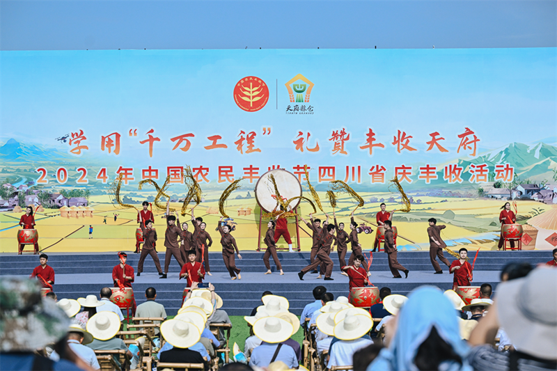 此次豐收節(jié)以“學(xué)用‘千萬工程’ 禮贊豐收天府”為主題,堅持農(nóng)民為主體、突出農(nóng)民唱主角,開展了群眾慶豐收聯(lián)歡活動和豐富多彩、形式多樣的慶豐收系列活動。