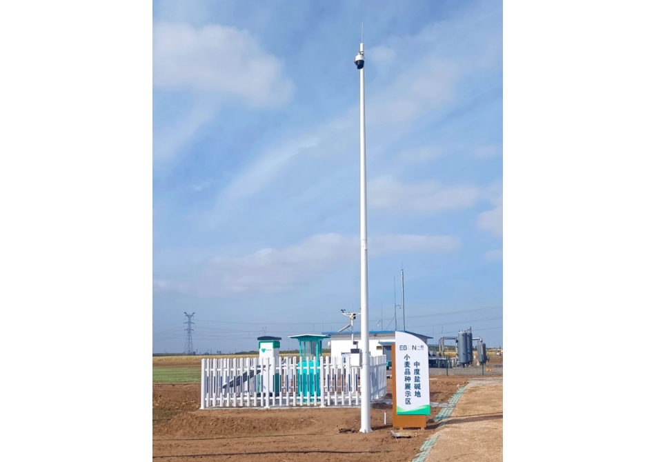 一方面聯(lián)合科研院校力量,探索實踐“科技小院”模式,構(gòu)建"以種適地"與"以地適種"協(xié)同創(chuàng)新體系;另一方面攜手成都比昂科技有限公司(以下簡稱“比昂科技”)與浪潮集團,打造一邦全梯度耐鹽堿作物種質(zhì)創(chuàng)新項目,在中度鹽堿地小麥品種展示基地,部署智慧農(nóng)業(yè)監(jiān)測站+地基遙感站,實現(xiàn)農(nóng)田數(shù)字化管控,為鹽堿地裝上全天候"科技慧眼",助力作物健康生長。
